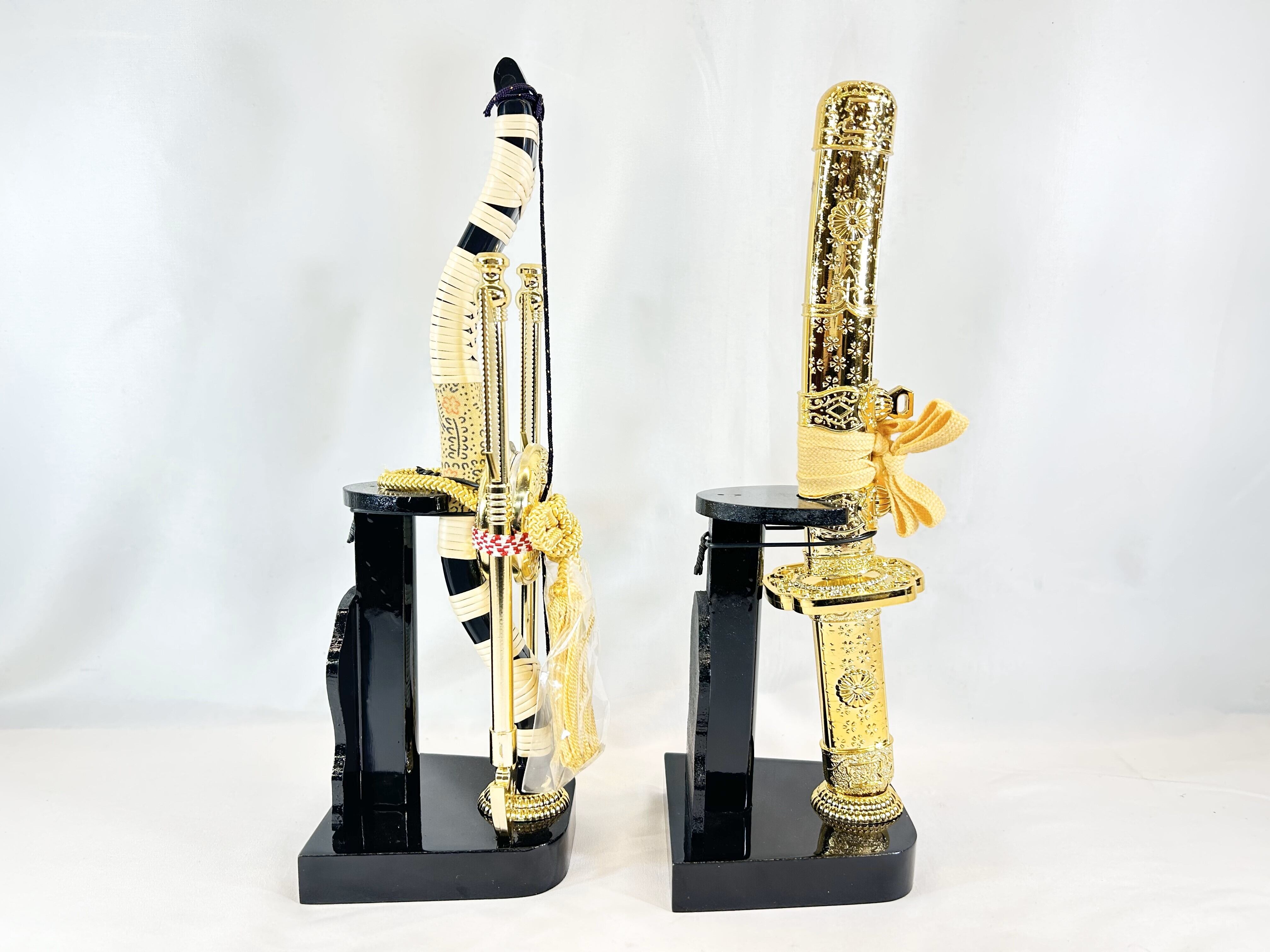 10362 透かし模様付深彫鍬形兜セット 収納セット 差し込式 四角枠 収納彫金風屏風 弓太刀付き 五月人形 兜飾り 端午の節句 初節句 お祝い こどもの日 コンパクト プレゼント ギフト 海外土産 節句飾り かぶと 兜