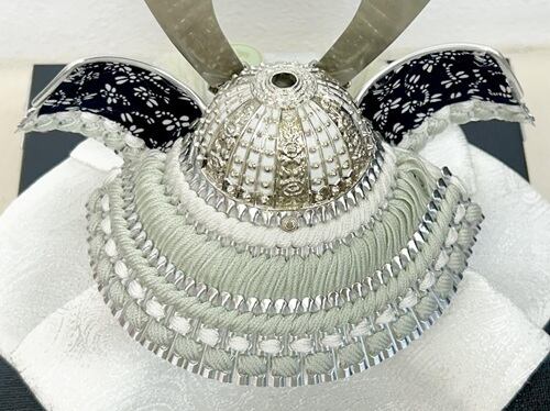 ● 銀小札に淡い緑色の縅糸、パステルカラーの優しい雰囲気の兜飾りです。