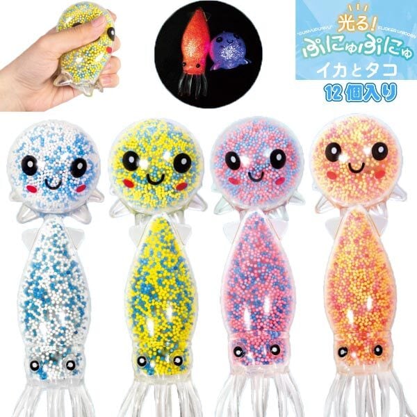 光るぷにゅぷにゅ海の生き物 イカ・タコ 24個セット おもちゃ まとめ買い イベント 景品 祭り 夏祭り 縁日 屋台 子供会 玩具 ノベルティ 販促品 男の子 女の子 子供 こども キッズ スクイーズ 水族館 イカ タコ お土産 グッズ 海の家 玩具