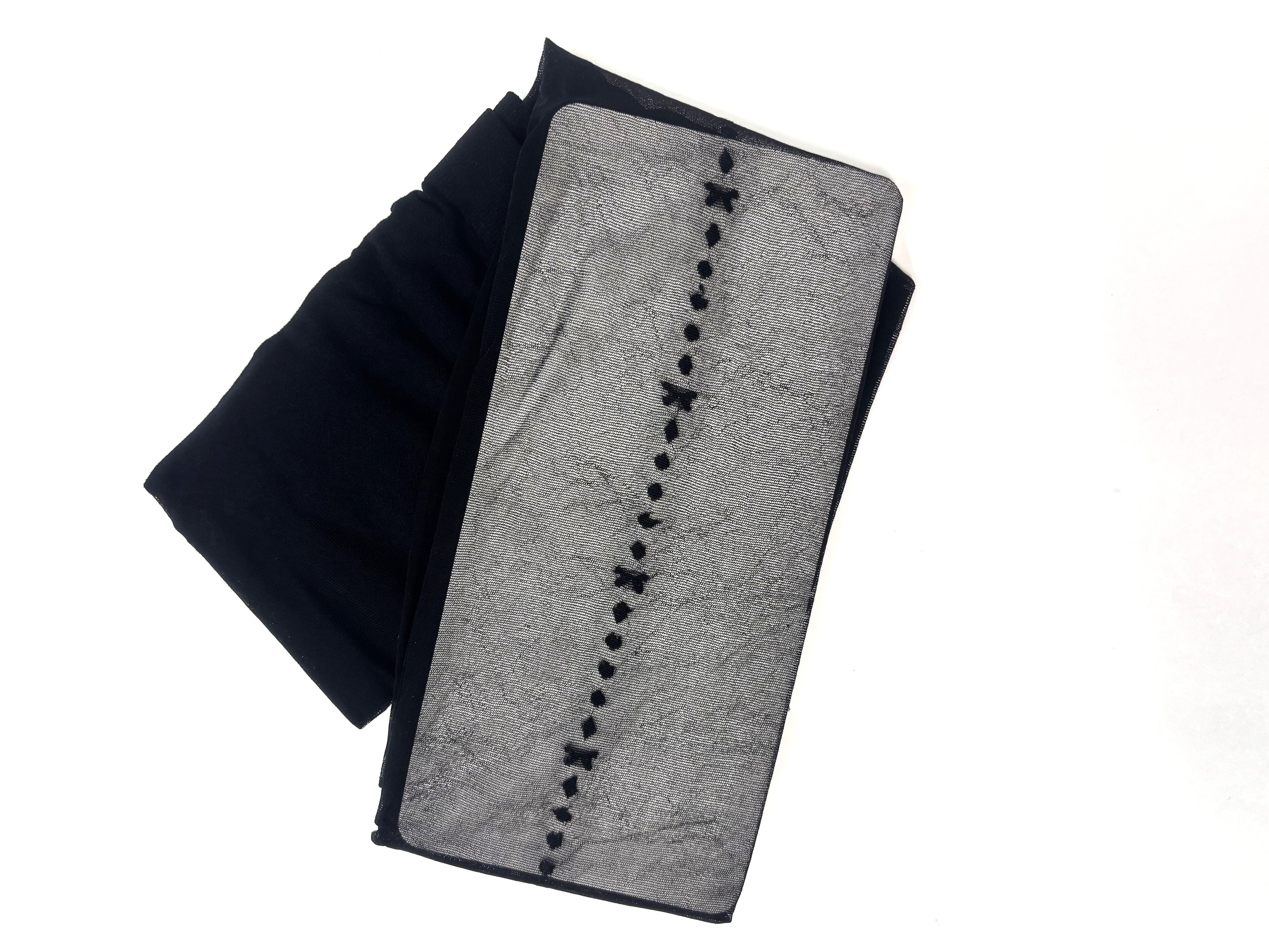 ● 黒のドットとリボンラインの刺繍が施されたブラックのストッキングです。