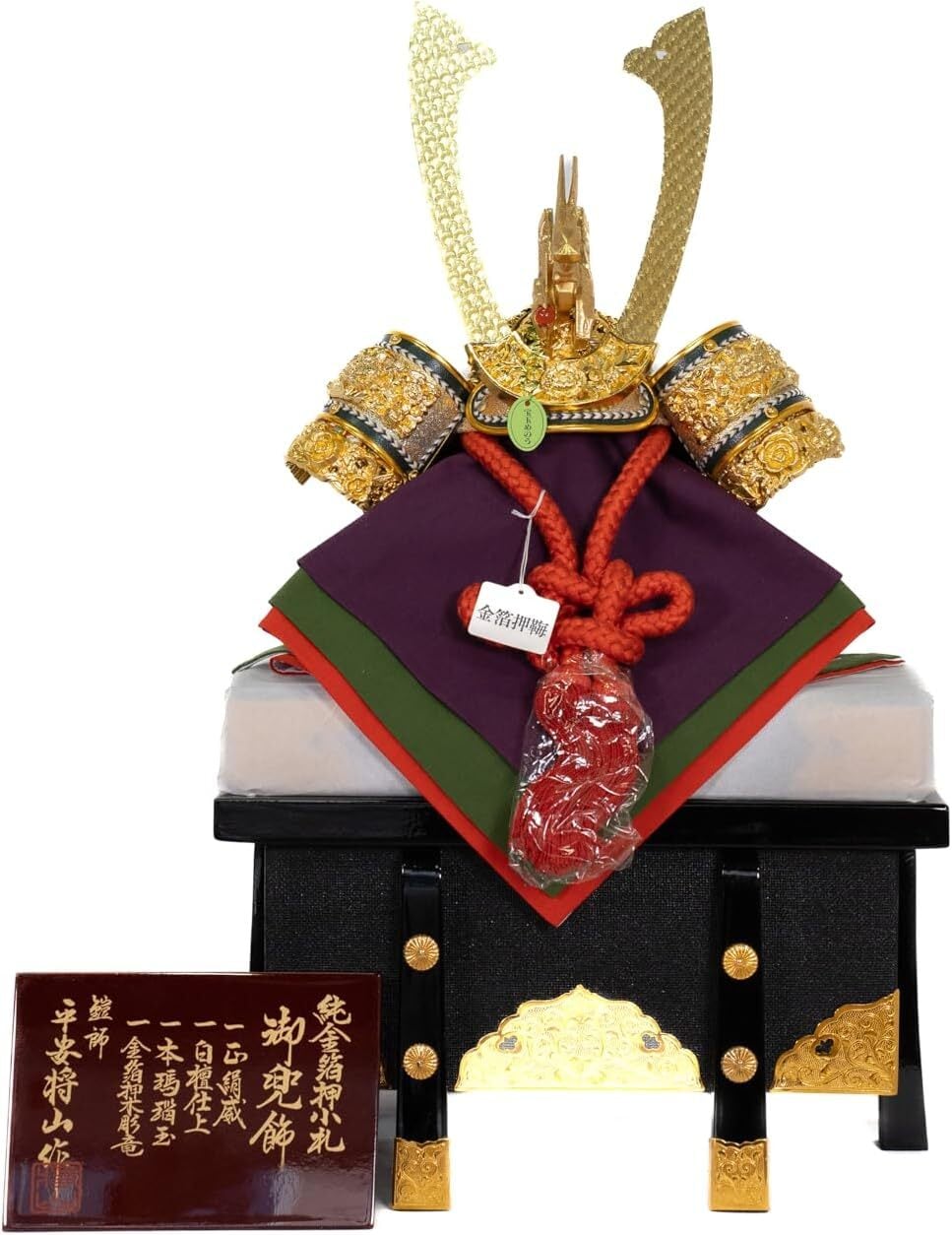 15号 金峰山兜 華 重量感 正絹 コンパクト 端午の節句 初節句 お祝い 海外土産 特別限定品 コンパクト 日本伝統 日本土産 五月人形金色鉄製