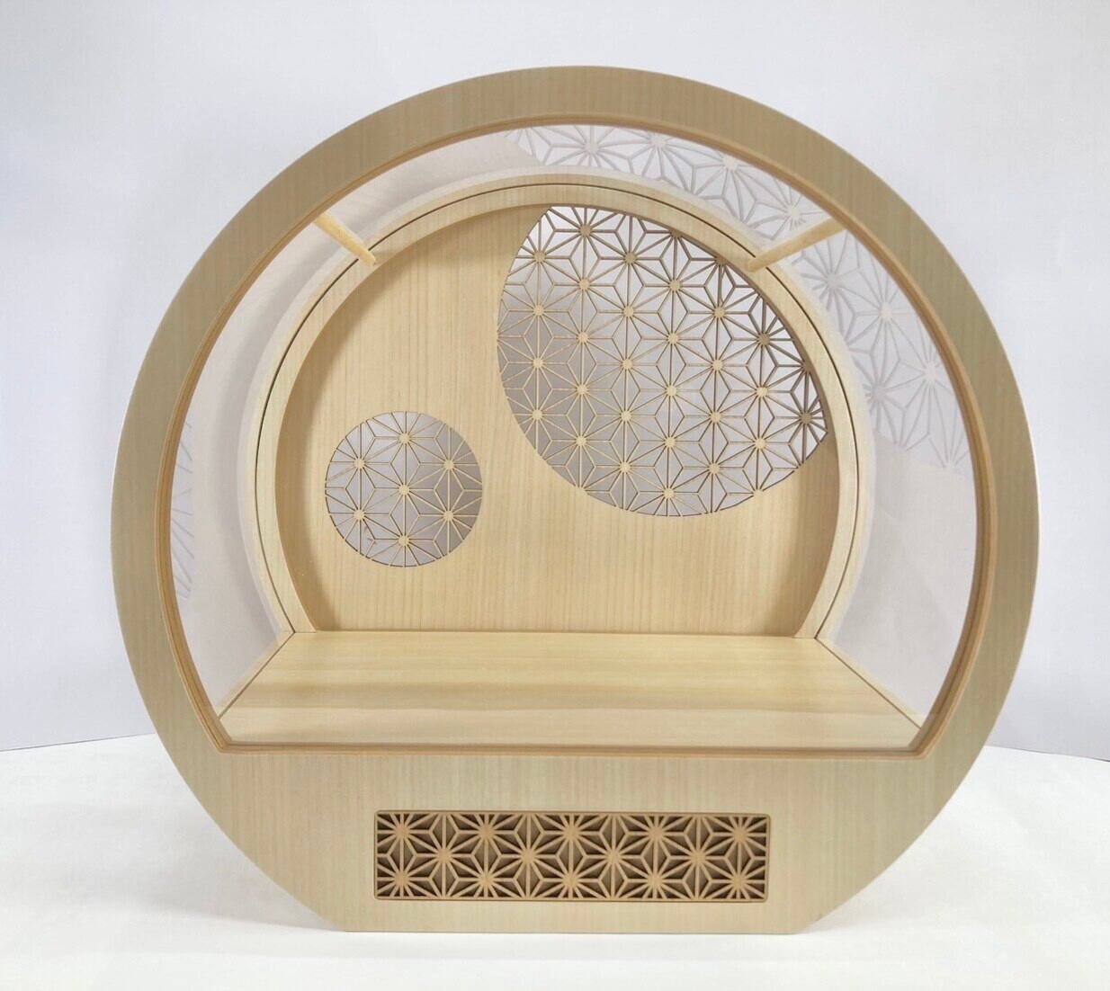 ● 木目調の屏風付き飾り台なのでオシャレでどのインテリアにも合います。
