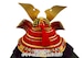 ● 迫力があるがある大きな鍬形(くわがた)、純金箔押しの小札板に赤糸縅が映える豪華な兜飾りです。