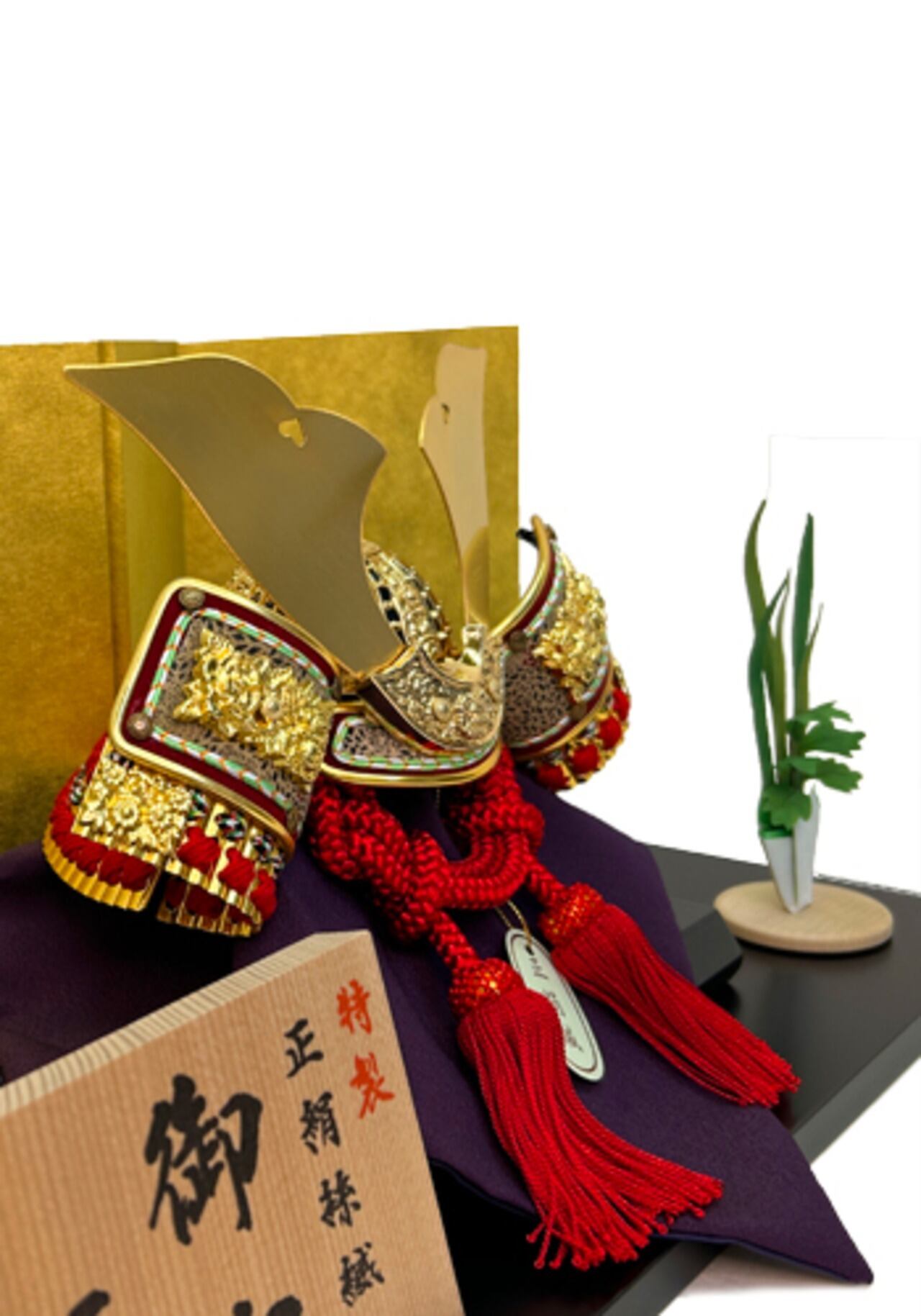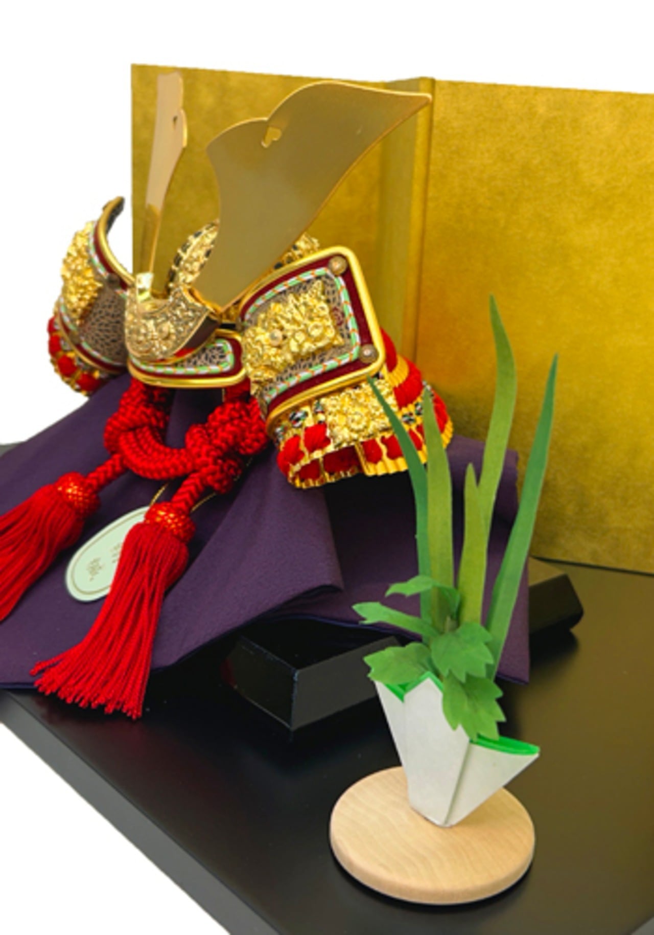 ● 兜に屏風、飾り台、菖蒲飾りを合わせた平飾りです。