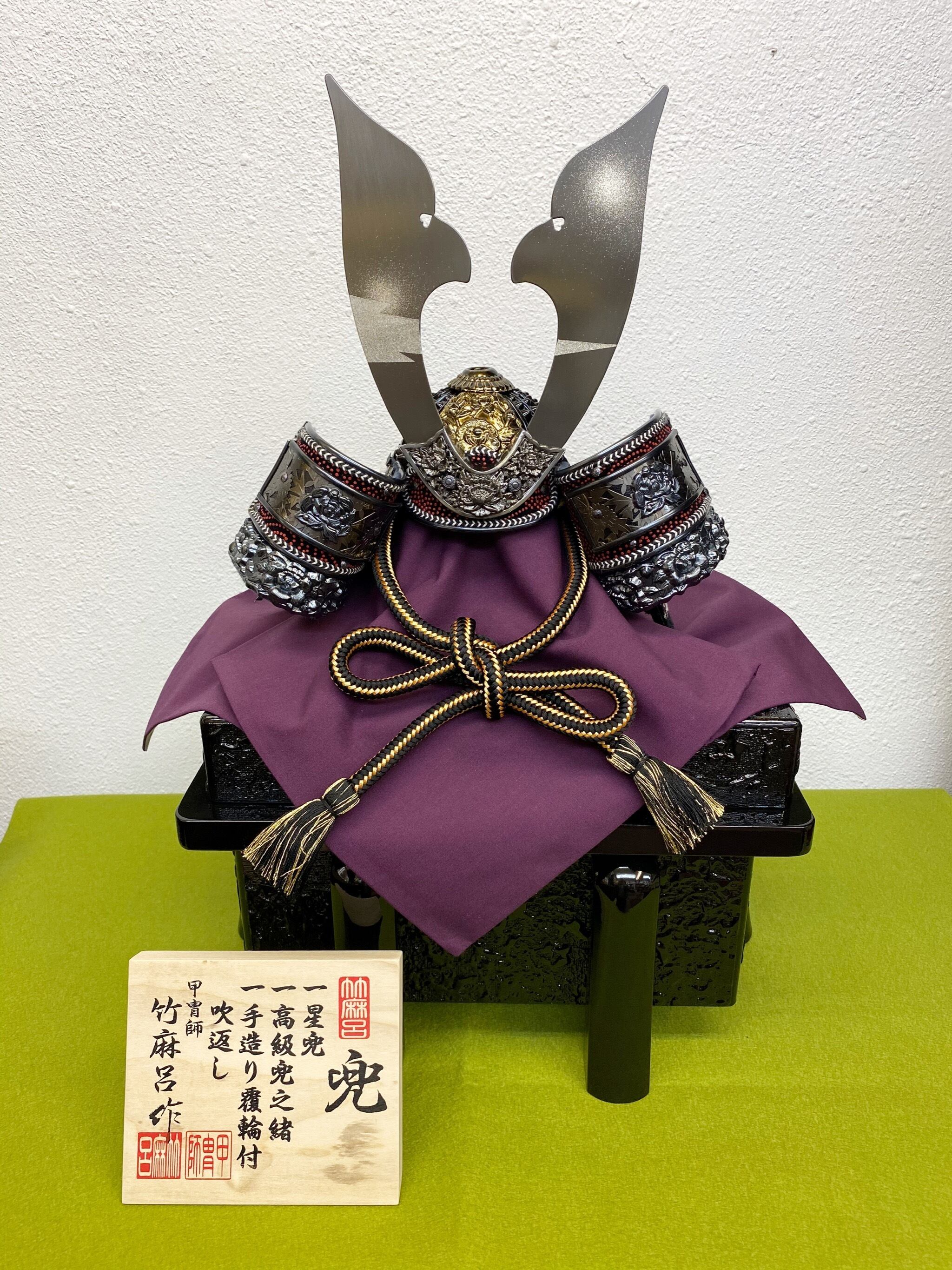 ● 注)撮影時に、光の反射で鍬形の左右に白い丸く写り込んでいます。柄ではありません。