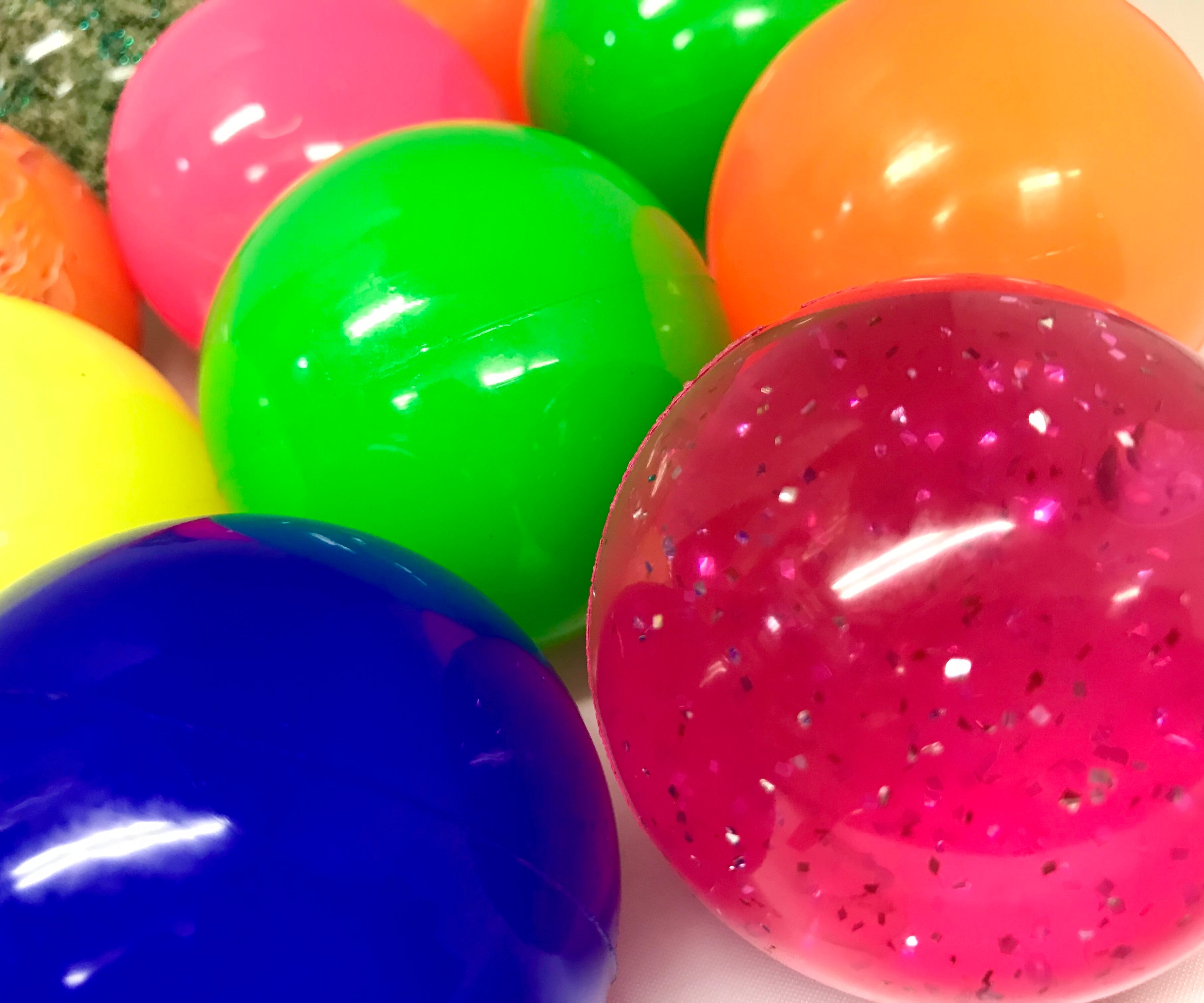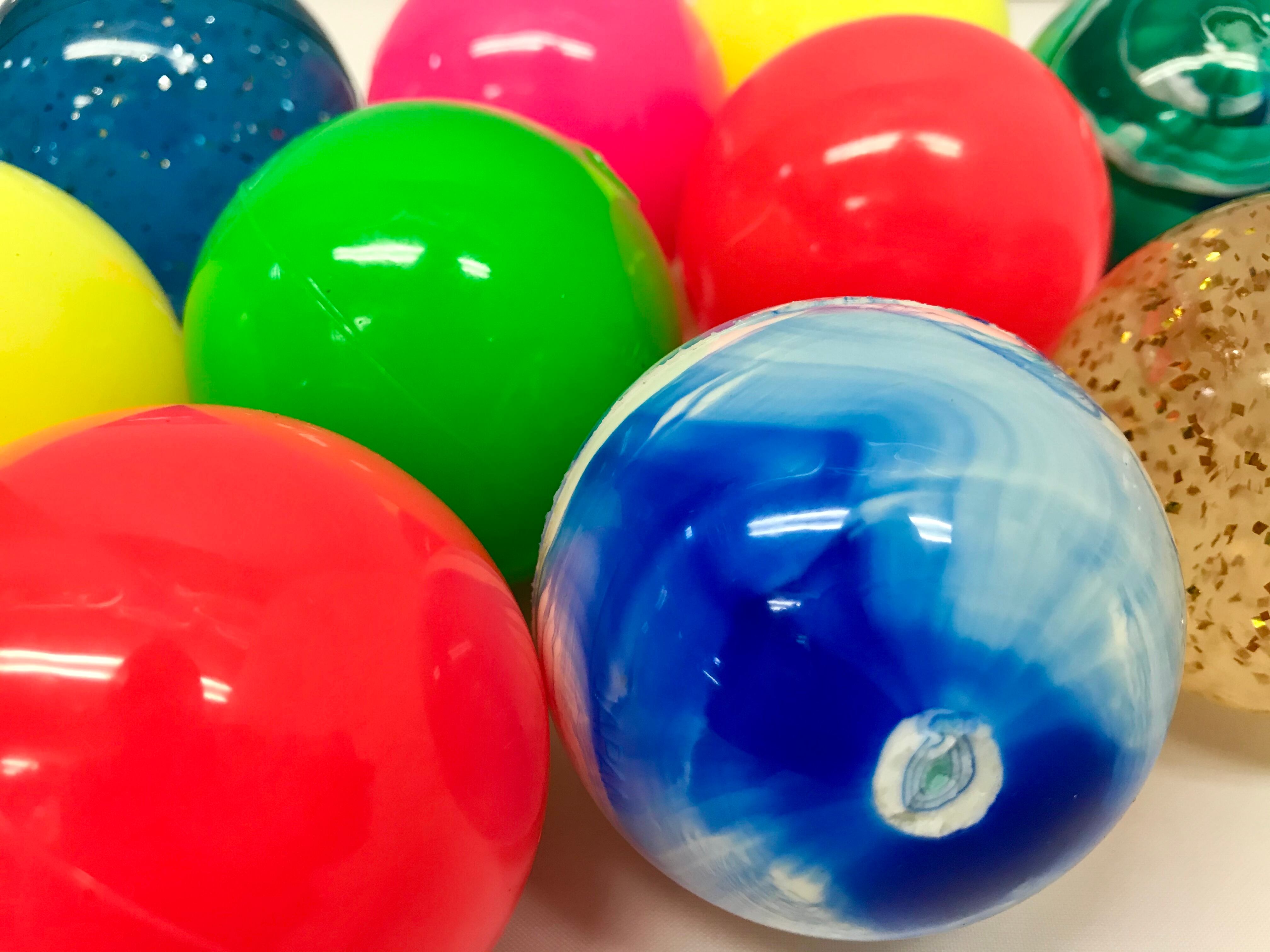 いろんなカラーや模様の60mmサイズのスーパーボールのセットです。