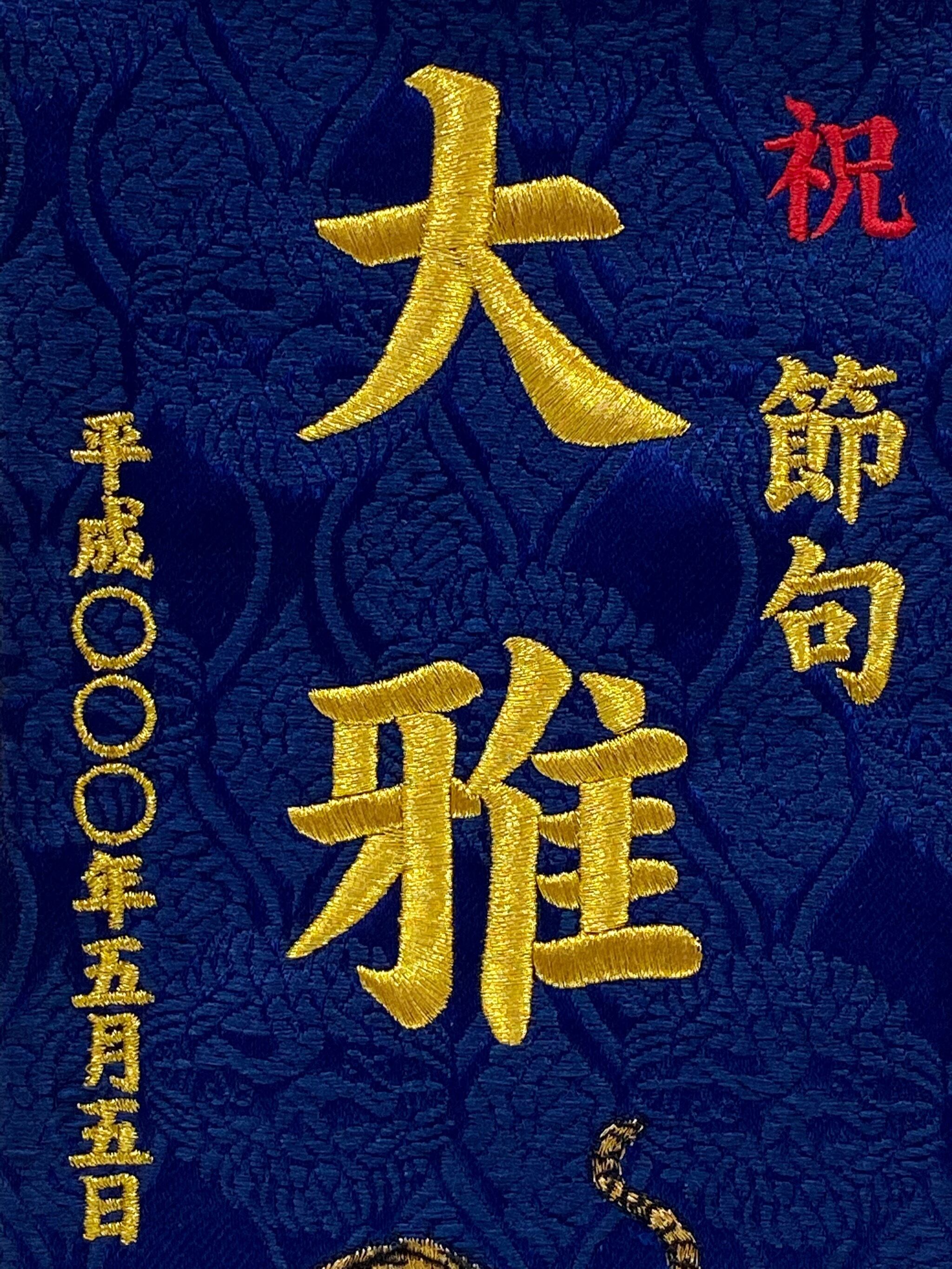 ・こちらの名前旗は「福久良刺繍・ふっくらししゅう」が特徴です。