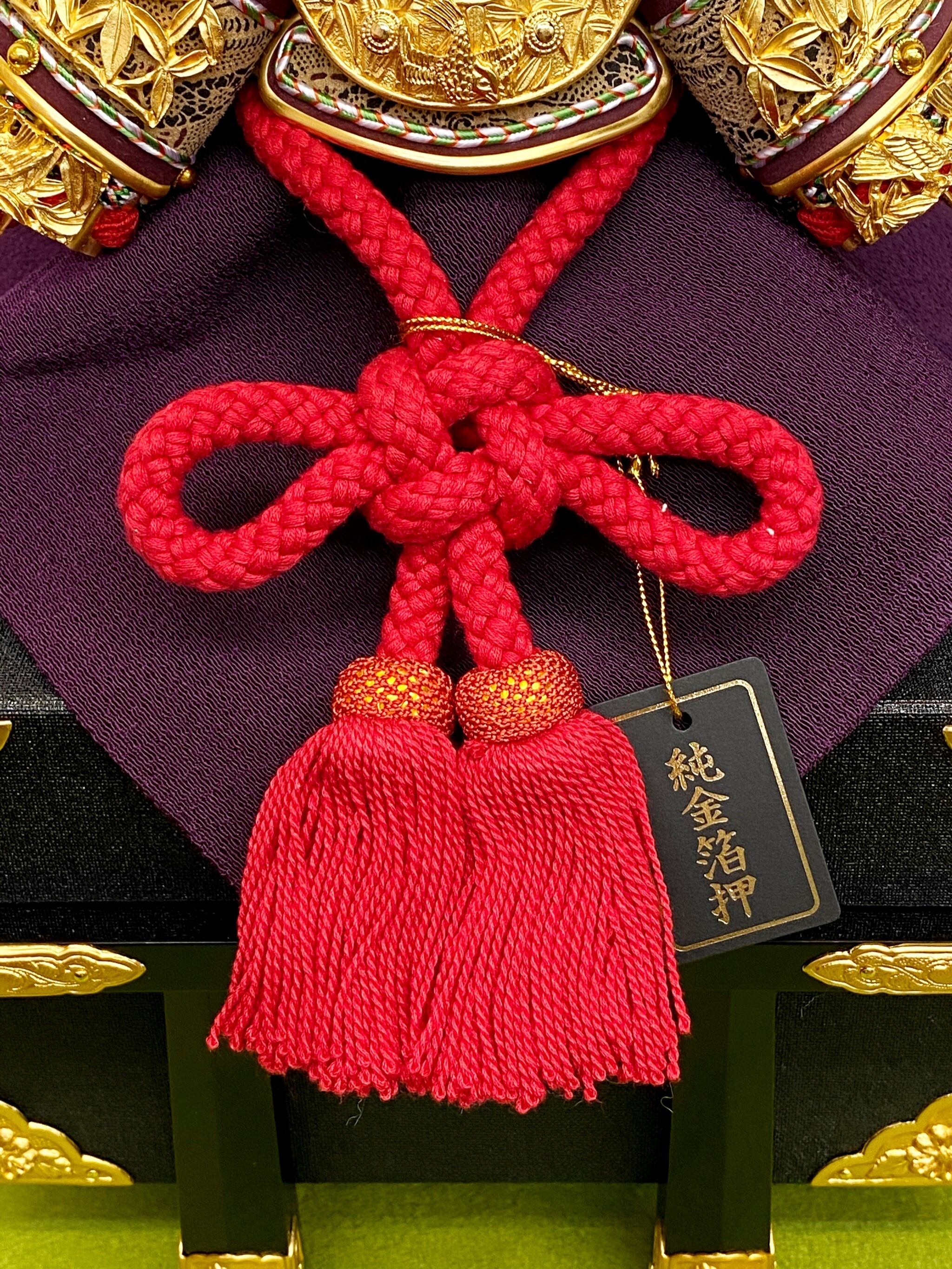 ◉兜鉢の後ろには献上、奉納、お祝いの時につける組紐(お守り)が付いています