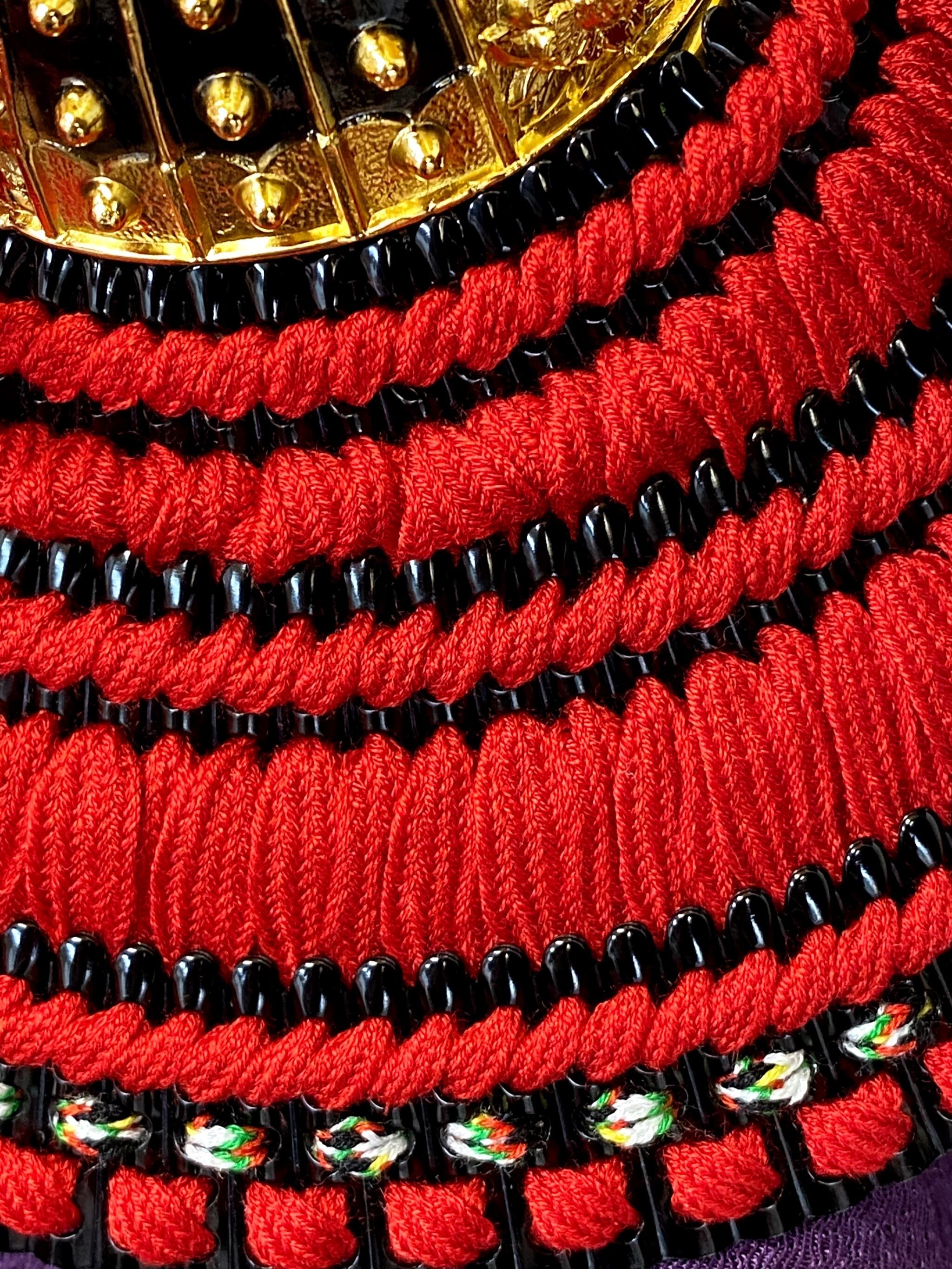 ◉吹き返しは本革を使用、金メッキの菊水紋を装着しています。
