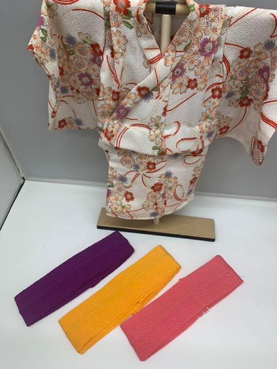 ・3色の帯付き。 お好きな色の帯を結んで楽しんで下さい。