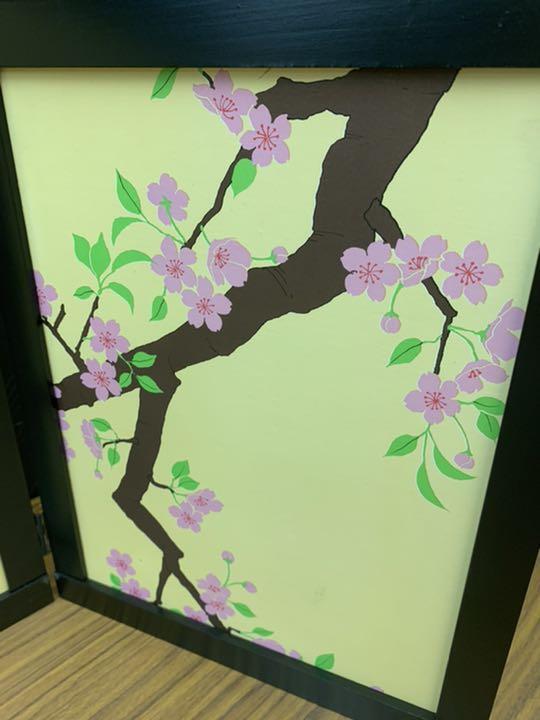 ・可愛らしい絵柄の屏風で、桜と橋が印象に残るような上品な屏風になります。