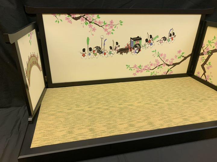・可愛らしい絵柄の屏風で桜と橋が印象に残るような上品な屏風になります。