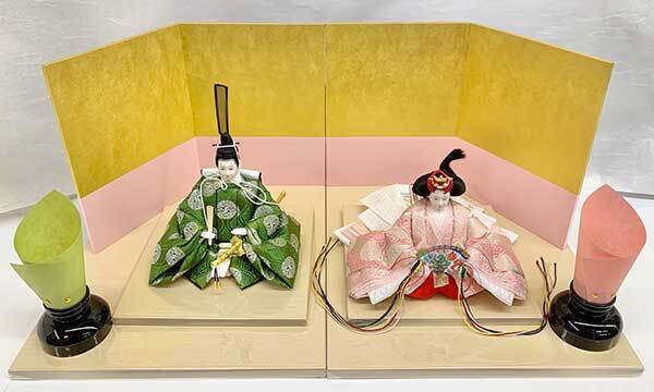 【親王飾り】京12番 緑と桃の向鶴文No.238594【緑色の唐織衣装は厄除け・健康祈願】【雛人形】【ひな人形】【初節句】【ひな祭り】