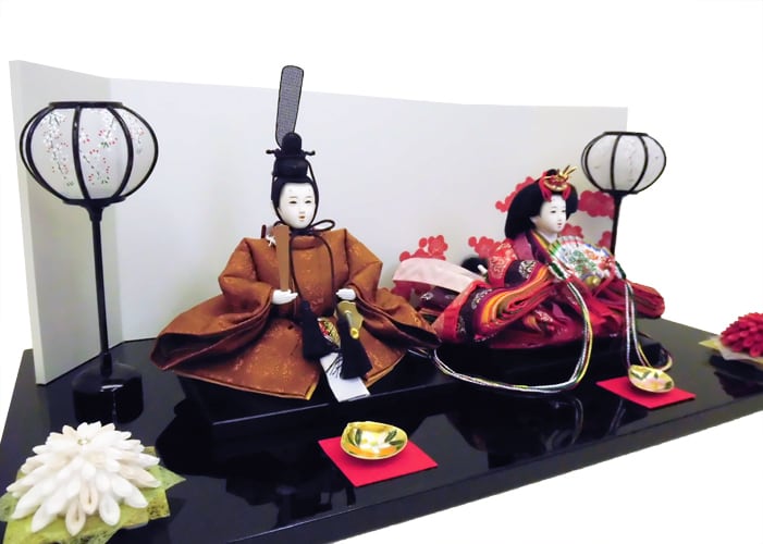 親王飾り 15番 正絹黄櫨染 白梅屏風飾り