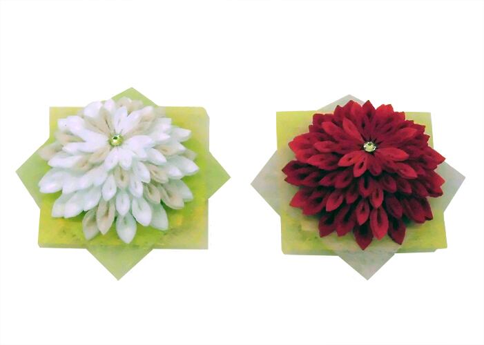 ●つまみ細工の紅白の菊を盛り花風に飾りました。