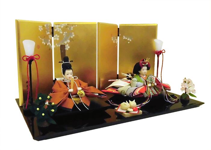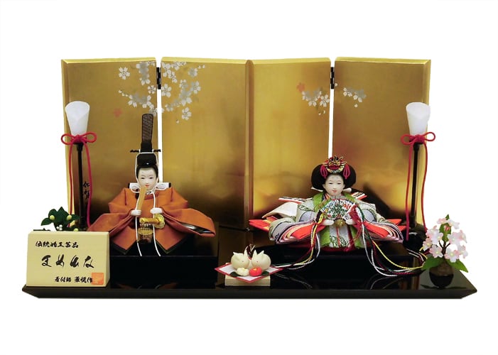 まめ親王 正絹黄櫨染 加賀蒔絵 金箔屏風飾り