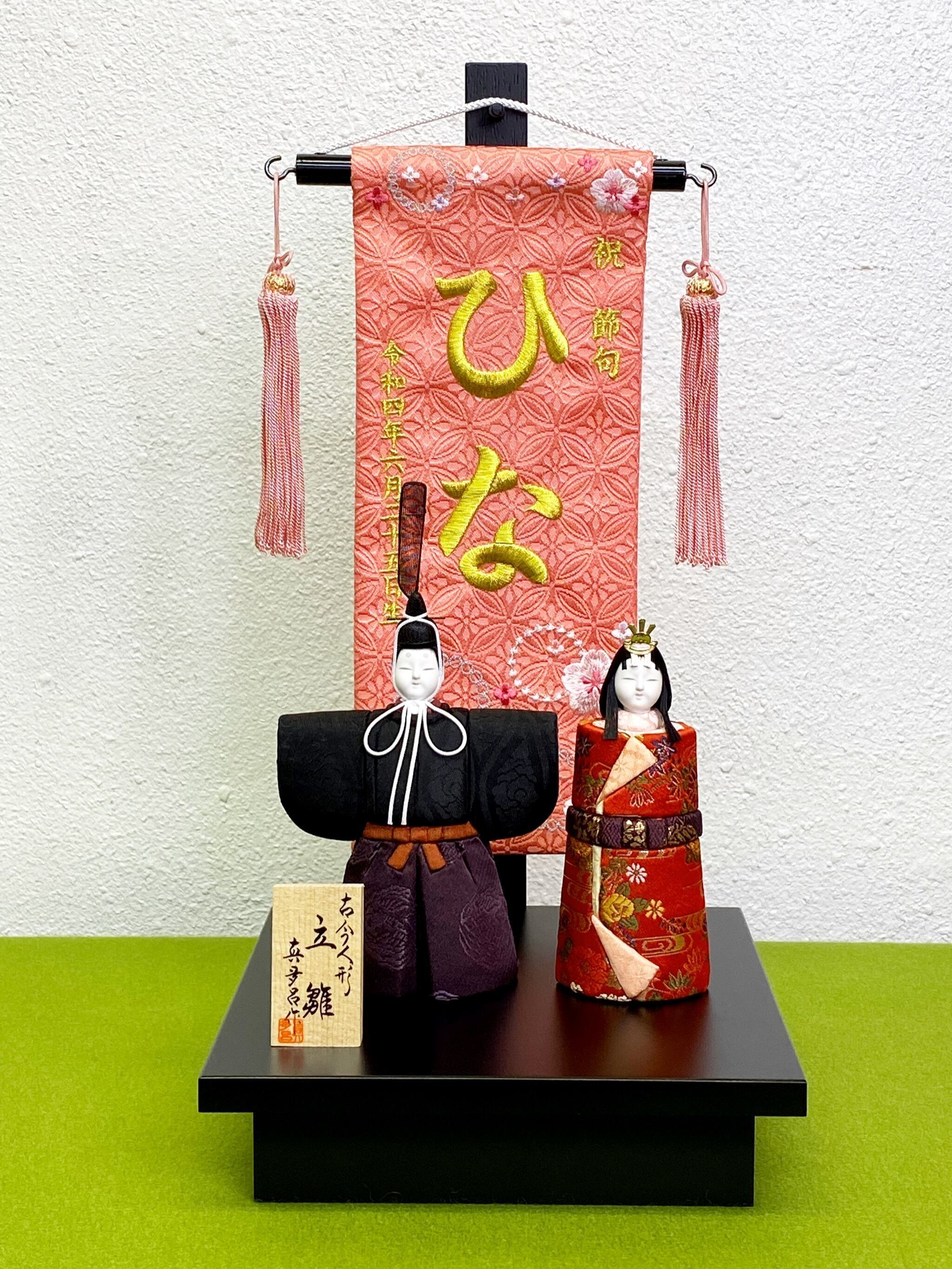 金林真多呂 木目込人形 立ち雛 雲立涌・黒 真多呂作 + 名前旗 桜(小)セット