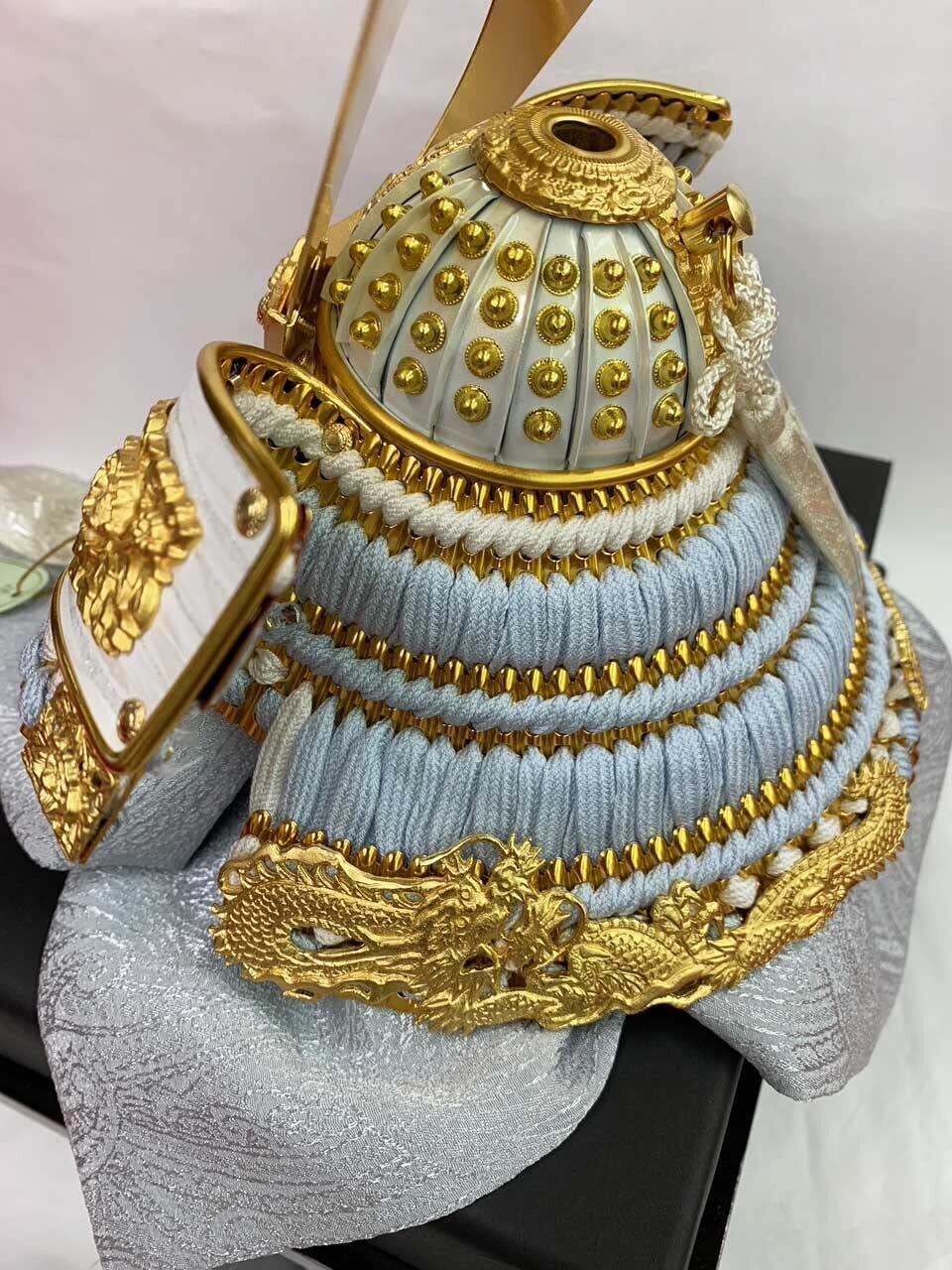 8号 パステルブルー 兜飾り 櫃付き 正絹・合わせ鉢