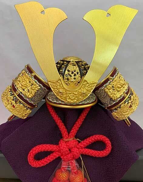 ● 兜鉢の後ろには献上、奉納、お祝いの時につける組紐(お守り)が付いています。