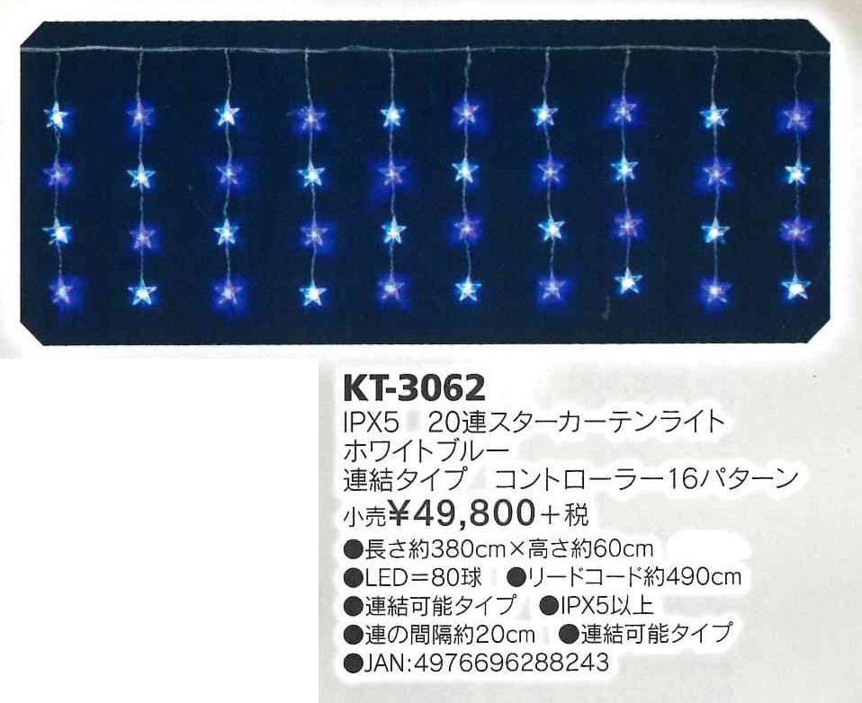 フローレックス KT-3062 IPX5 20連スターカーテンライトホワイトブルー 連結タイプ【メーカー直送品】【FLOREX・イルミネーション・店舗装飾】 電飾