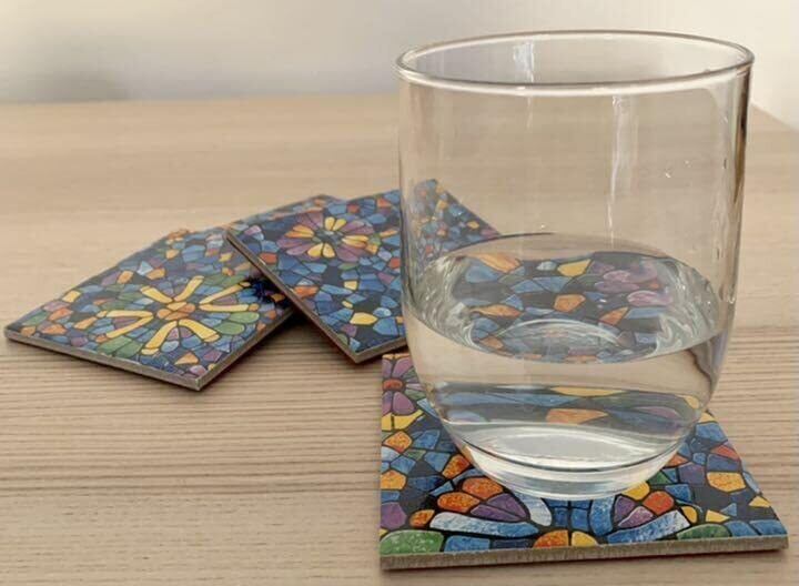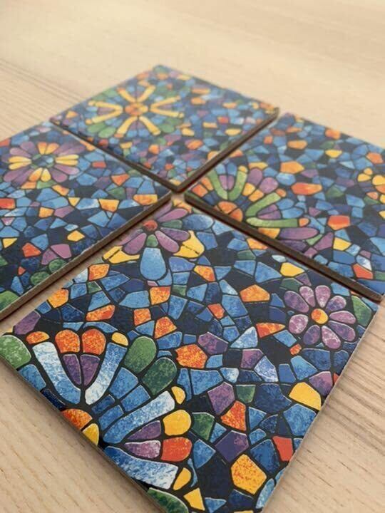 スペイン バルセロナ コースター 輸入品 4枚セット ガウディ柄 タイル 壁掛け インテリア 限定品