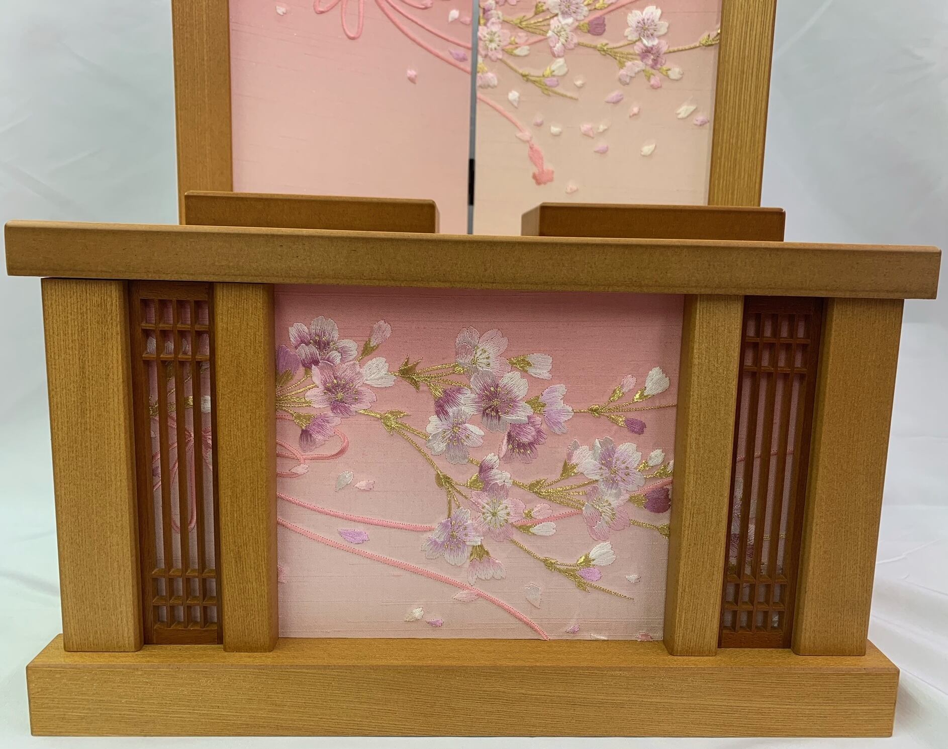 ● 桜の刺繍がされている屏風と台がとても素敵です。
