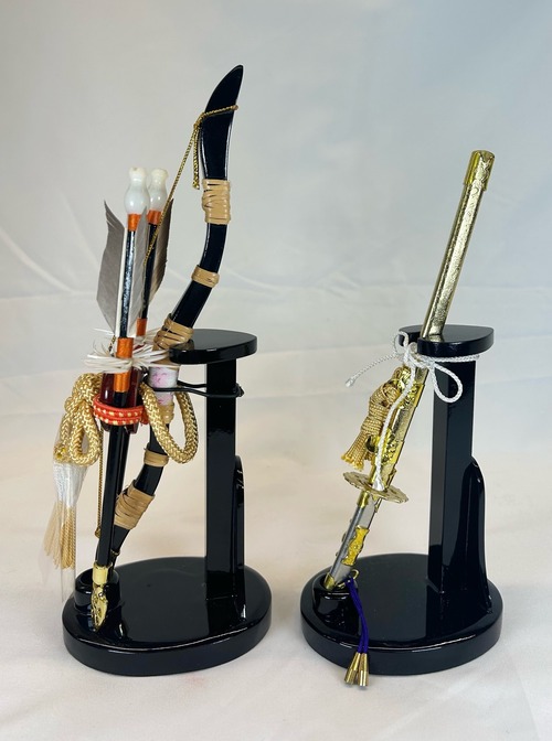 ● 五月人形の兜や鎧の脇に飾る弓と刀です。