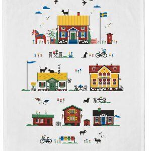 ● 白地にスウェーデンの家々と大人気のダーラナホースのイラストが描かれています。
