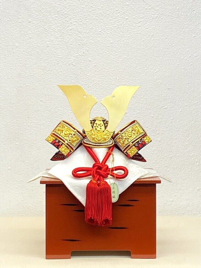 ● こちらの兜はお櫃にこだわり根来塗りの倭(やまと)櫃をご用意しました。
