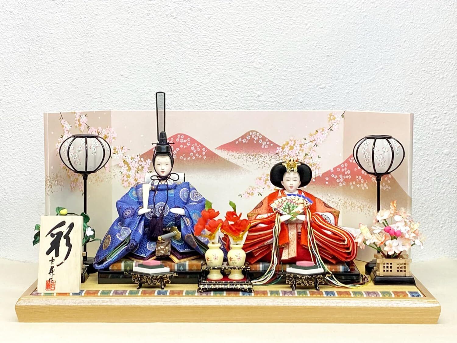 雛人形 親王飾り 芥子 親王飾り 山に桜 屏風畳台飾り 吉藤作 ひな人形 ひな祭り 雛祭り 雛飾り ひな飾り お祝い プレゼント 海外土産 桃の節句 節句飾り 日本伝統 文化 コンパクトサイズ
