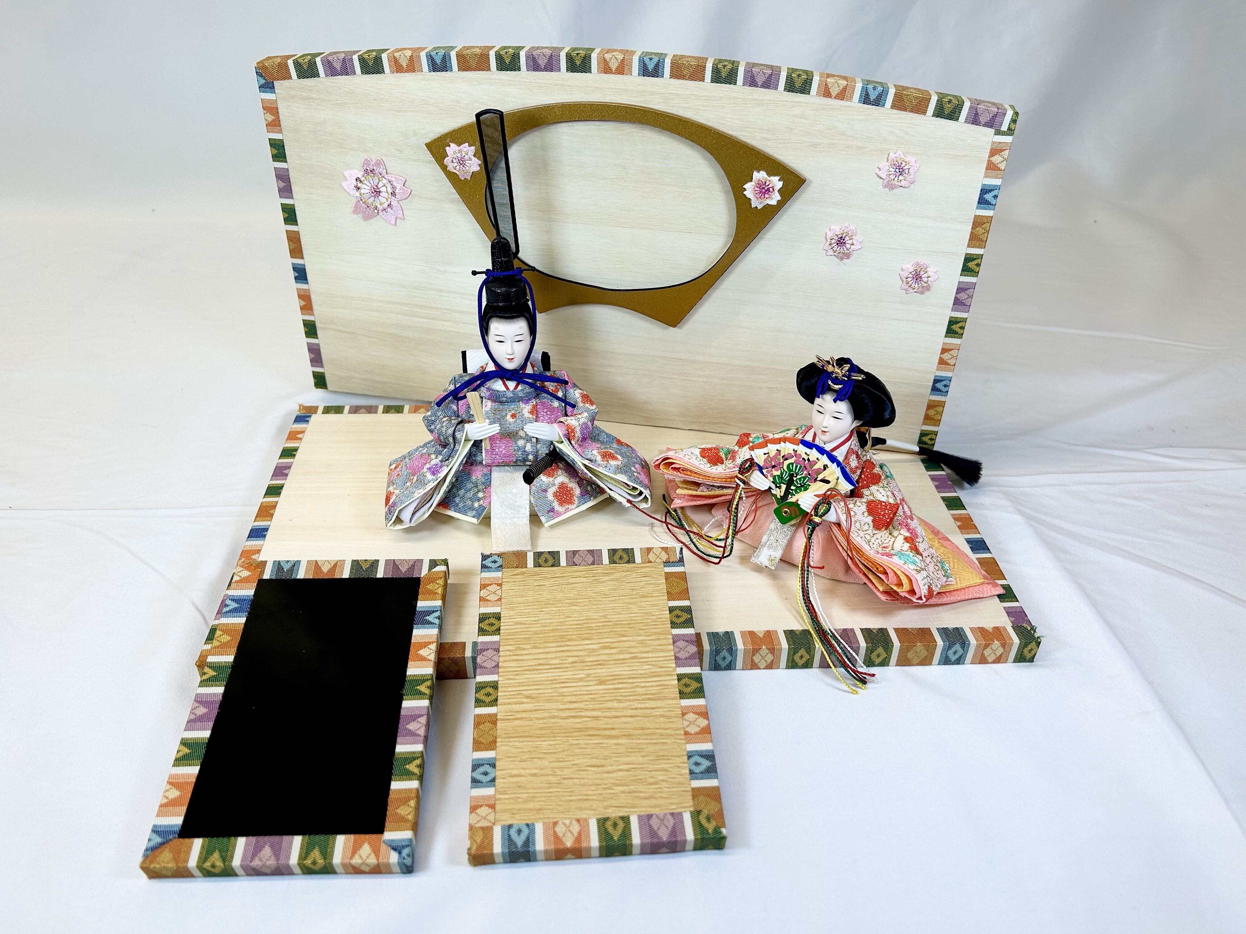K-30-A 桐 木材 平台・衝立 写真入れ付き 桜刺繍 A 豆親王A 親王飾りセット 親王飾り 雛人形 ひな人形 初節句 ひな祭り 桃の節句 小さなお雛様 コンパクト お雛様 海外へのお土産 お祝い 誕生祝い プレゼント 日本伝統 日本文化 日本土産 伝統工芸