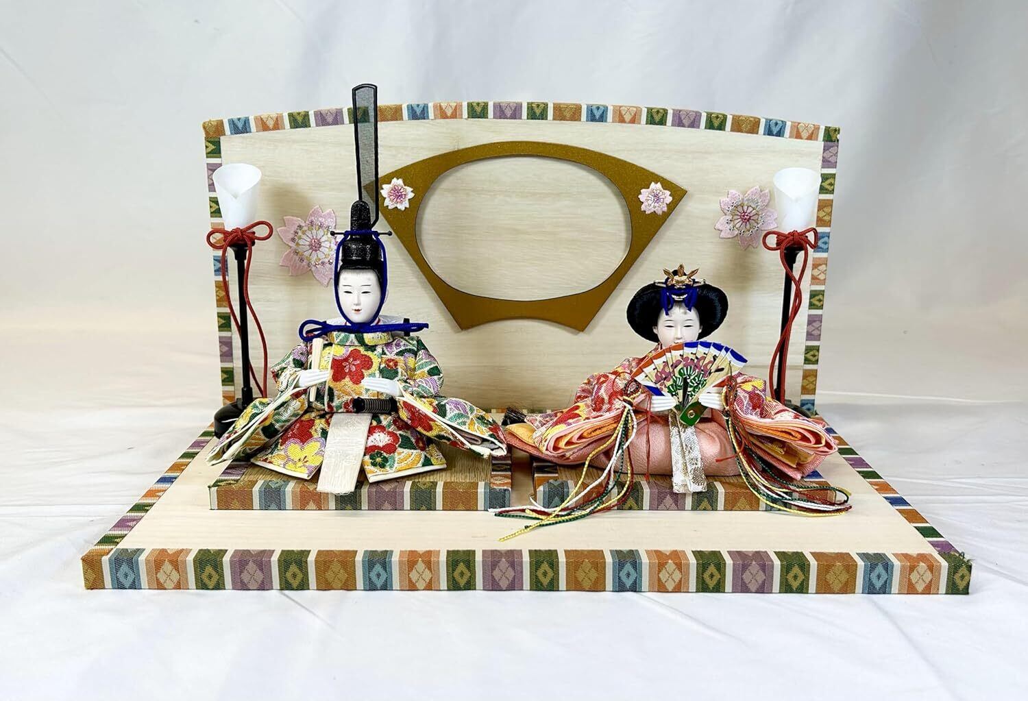 K-34-A 桐 木材 平台・衝立 写真入れ付き 桜刺繍 A 豆親王B 親王飾りセット 親王飾り 雛人形 ひな人形 初節句 ひな祭り 桃の節句 小さなお雛様 コンパクト お雛様 海外へのお土産 お祝い 誕生祝い プレゼント 日本伝統 日本文化 日本土産 伝統工芸