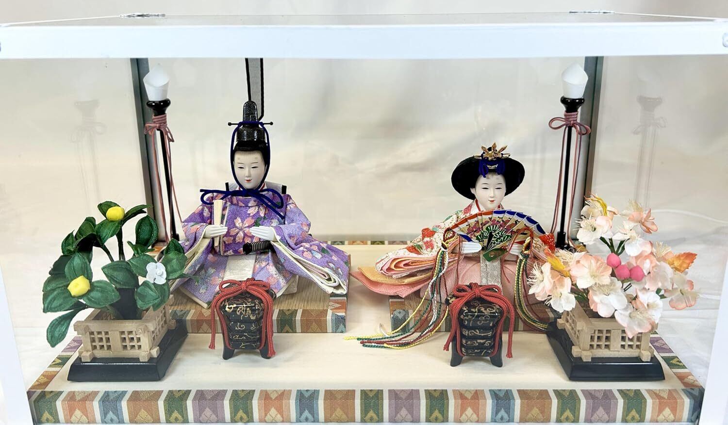 S-84 豆親王C 白枠ガラスケース飾り 燭台 貝桶 桜橘 親王飾り 雛人形 ひな人形 初節句 ひな祭り 桃の節句 小さなお雛様 コンパクト お雛様 海外へのお土産 お祝い 誕生祝い プレゼント 日本伝統 日本文化 日本土産 伝統工芸
