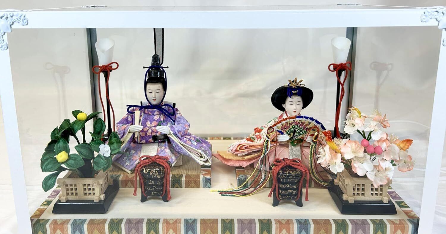 S-83 豆親王C 白枠ガラスケース飾り 燭台 桜橘 貝桶 親王飾り 雛人形 ひな人形 初節句 ひな祭り 桃の節句 小さなお雛様 コンパクト お雛様 海外へのお土産 お祝い 誕生祝い プレゼント 日本伝統 日本文化 日本土産 伝統工芸
